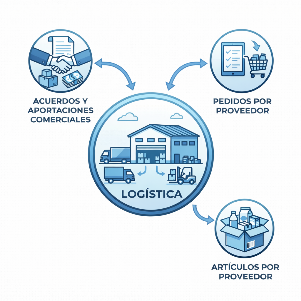Integración de Ecosistema, Logística, Proveedores, Facturación y Avisos.