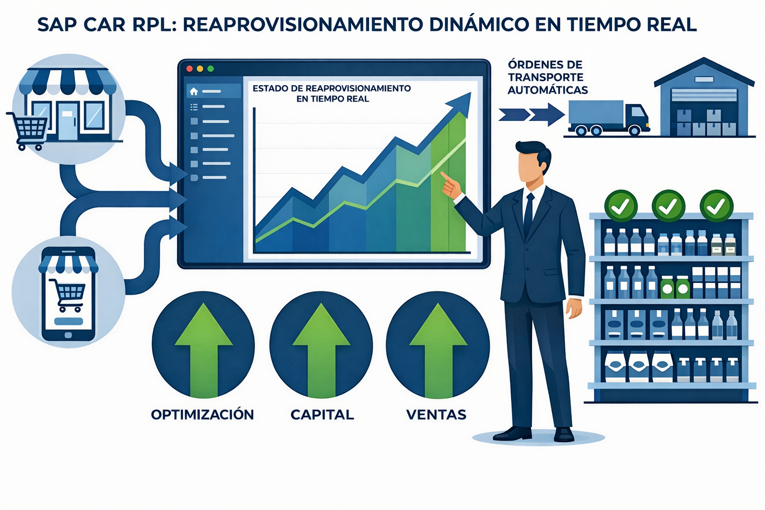 Pase de un reabastecimiento reactivo basado en el ayer, a una estrategia de disponibilidad proactiva basada en el ahora. En el retail de alta velocidad, esperar al cierre nocturno para reponer es llegar tarde. SAP CAR RPL (Replenishment) es la funcionalidad avanzada que permite a las empresas de retail mantener sus estantes llenos basándose en el movimiento real de la venta omnicanal.